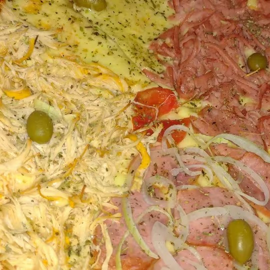 Mussarela, presunto, tomate, calabresa, frango, azeitona e orégano
