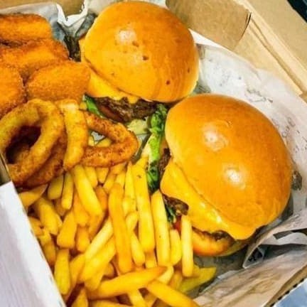 Burguer de 120gr cada+ queijo cheddar cremoso+ 5 nuggets + 5 onions + porção de batata P