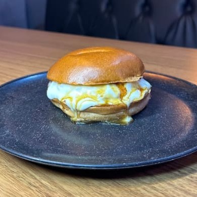 Pão brioche, blend 100g, queijo coalho, cream cheese e cebola caramelizada com mel.
