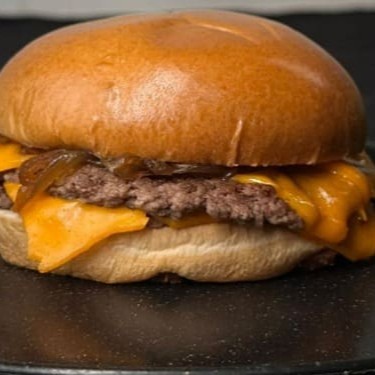 Pão Brioche + Blend de 90gr + Queijo Cheddar em Fatia + Barbecue Artesanal, obs: não leva salada. só a cebola caramelizada.