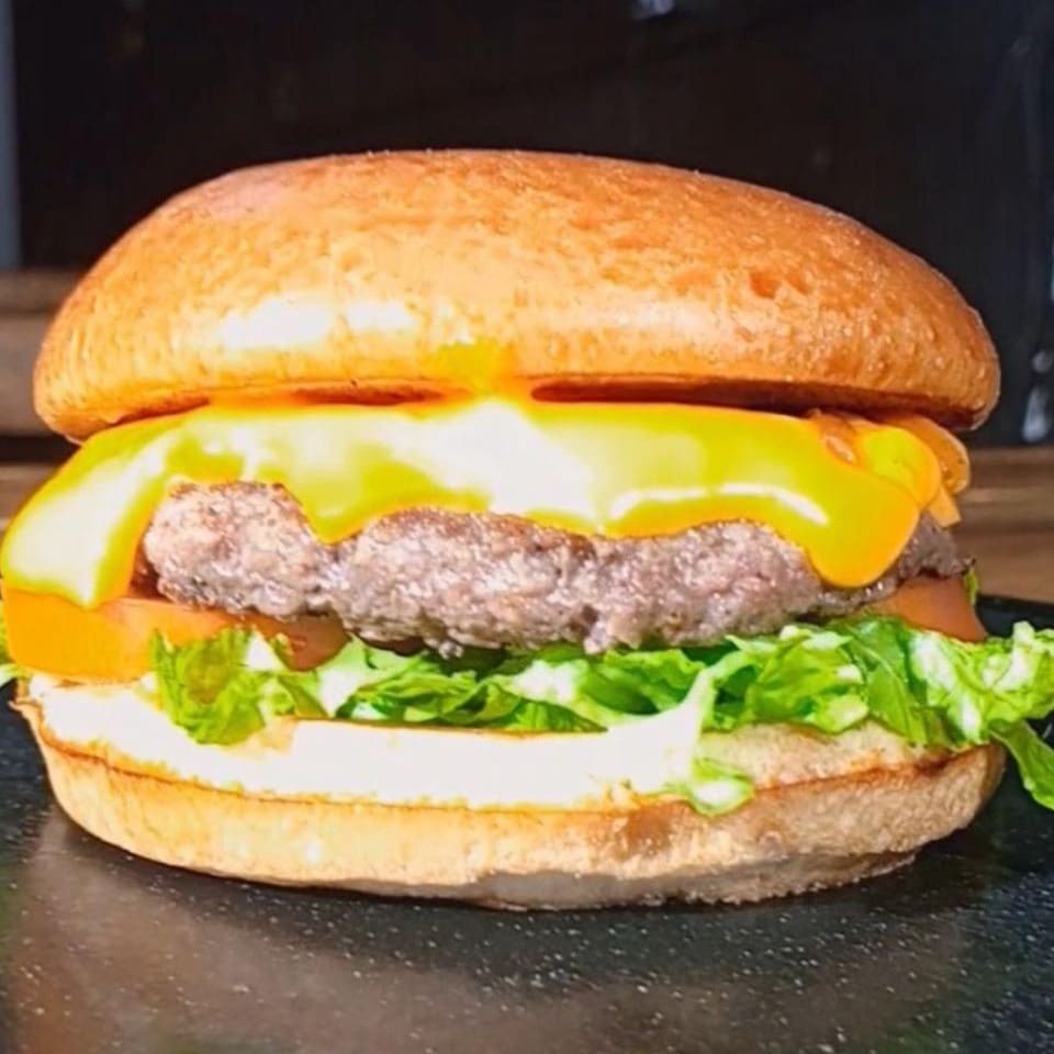 Pão brioche, blend 90g, queijo mussarela em fatia e cheddar cremoso, alface e tomate.
