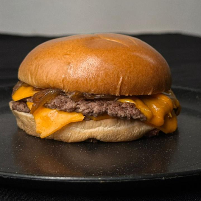 Pão Brioche, Burguer de 90gr, Queijo Cheddar Em Fatia, Bacon Crocante, cebola caramelizada.