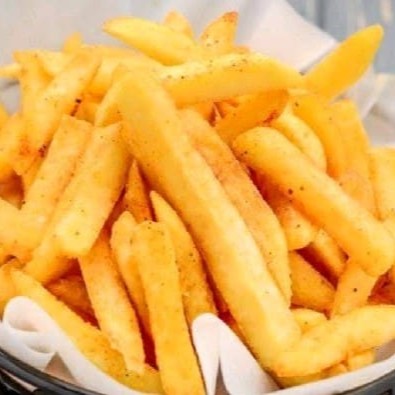 Batata frita, cristal levemente temperada .