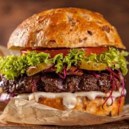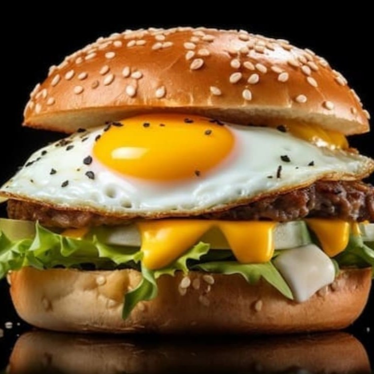 Pão bola, 1x carne de hambúrguer artesanal (100)g , ovo frito na chapa , queijo cheddar, tomate , alface, cebola caramelizada ao molho shoyu, e nossa maionese cremosa artesanal.