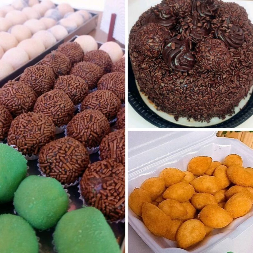 Torta chocolate 1kg, 25 doces variados e 25 salgados variados.