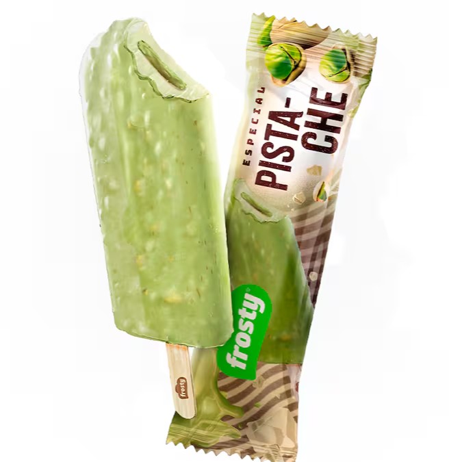 Desfrute do nosso Picolé Frosty Especial Pistache, uma verdadeira pérola congelada. Cuidadosamente elaborado, este picolé é constituído por um sedoso e cremoso sorvete de pistache, complementado com um recheio de pistache. Além disso, é finalizado com uma camada de pistache de alta qualidade, criteriosamente selecionado, garantindo um sabor inigualável e uma textura suave que derrete na boca.