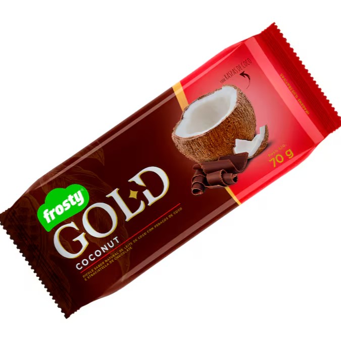 Descubra o esplendor do Gold Coconut Frosty, uma verdadeira joia gelada disponível no ! Este picolé é uma experiência culinária sem igual, onde cada mordida é uma jornada sensorial para os trópicos. Imagine-se envolto pelo sabor exótico e refrescante do coco, mergulhando em uma riqueza de sabores que se fundem harmoniosamente. Mas não para por aí! Uma luxuosa cobertura de chocolate de alta qualidade eleva ainda mais essa experiência, criando um contraste perfeito que vai fazer seus sentidos dançarem de alegria.