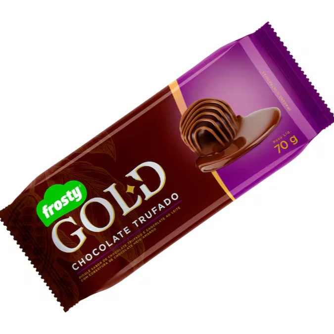 Descubra o requinte do Gold Chocolate Trufado Frosty, para os amantes de chocolate! Este picolé maravilhosamente elaborado oferece um sabor irresistível de chocolate trufado, cuidadosamente combinado com o clássico chocolate ao leite. Mas não para por aí! Para uma experiência de sabor ainda mais intensa, adicionamos uma cobertura de chocolate meio amargo, que traz um equilíbrio perfeito entre o doce e o amargo, elevando cada mordida a uma nova dimensão de prazer.