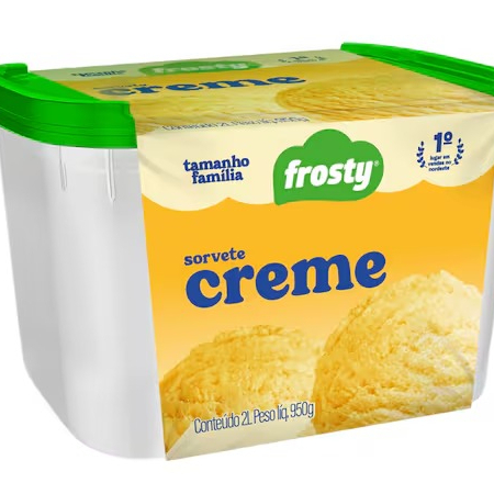 Descubra o Sorvete Creme 2 Litros Frosty - uma verdadeira obra-prima que vai transformar seus momentos em uma experiência de sabor sem igual! Este não é apenas um sorvete comum, é uma verdadeira joia, meticulosamente elaborada para proporcionar uma experiência gustativa única e inesquecível. Cada colherada é uma jornada de prazer refrescante, revelando todo o seu sabor cremoso e suave. Não Contém Glúten. Contém Lactose. Alerta para Alérgicos: Contém leite, derivados de leite e soja. Pode conter ovo.