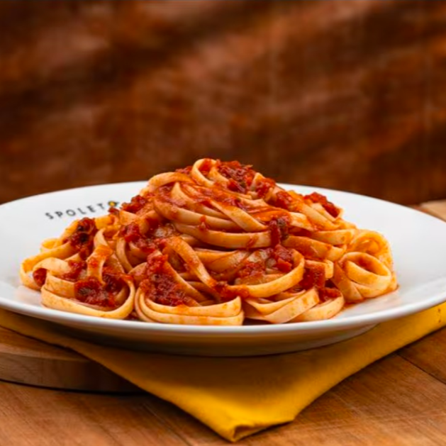 Fettuccine importado da Itália, ao molho pomodoro feito pelo Spoleto com tomates italianos, alho e orégano. Escolha entre Carne ou Filé de Frango, à milanesa ou à Parmegiana.