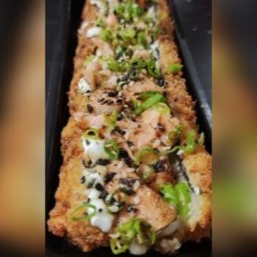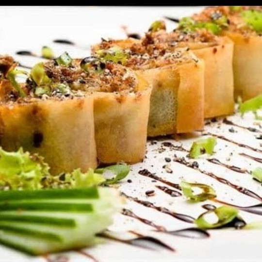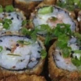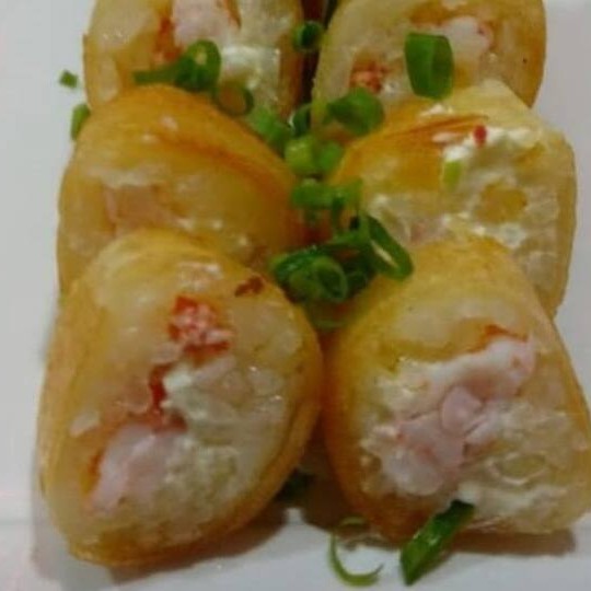 Salmão, arroz, cream cheeser e cebolinho em volto na massa de haromaki frita!!