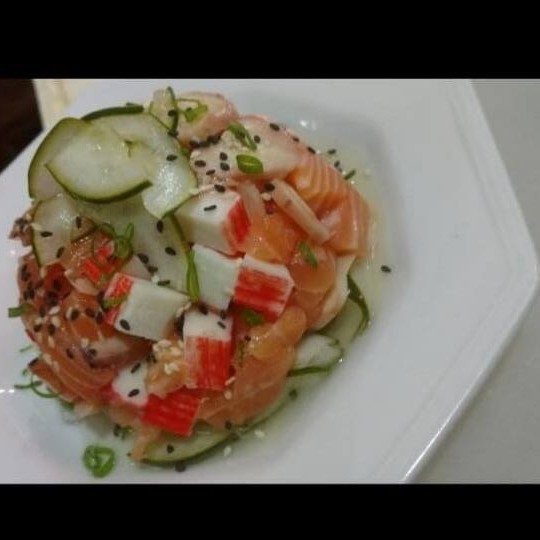 Salada de pepino, salmão,kani, camarão e gergelim torrado!!!