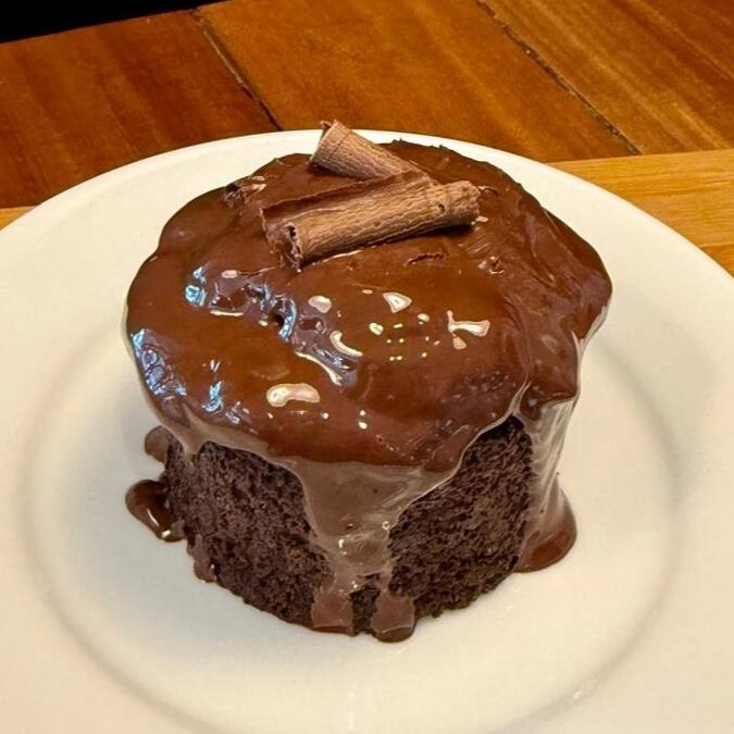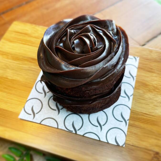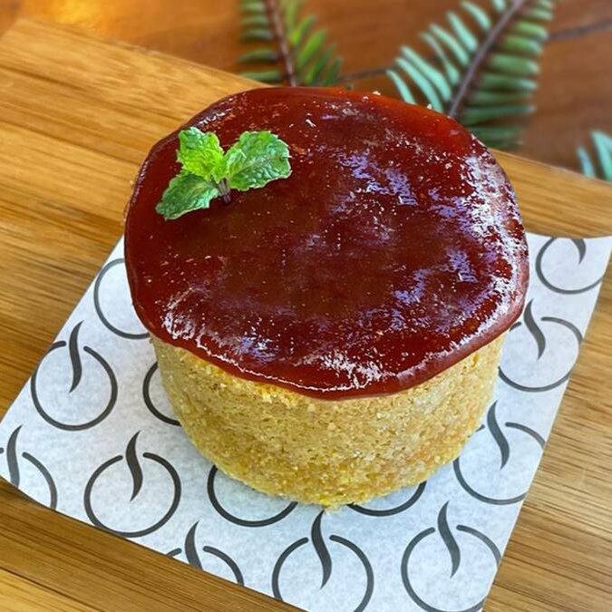 Mini bolo de banana, cacau eritritol, leite de soja farinha de aveia e óleo de coco com cobertura 50% cacau Genuine (Sem adição de açúcar).
