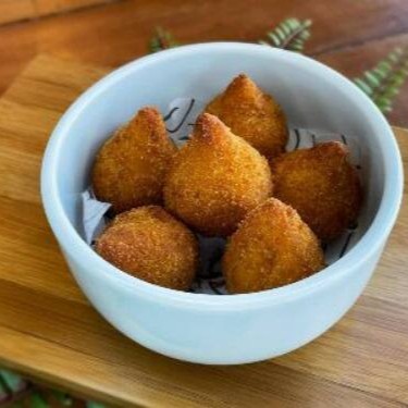 Porção com 6 mini coxinhas fritas na hora. Acompanha molho Rosê.