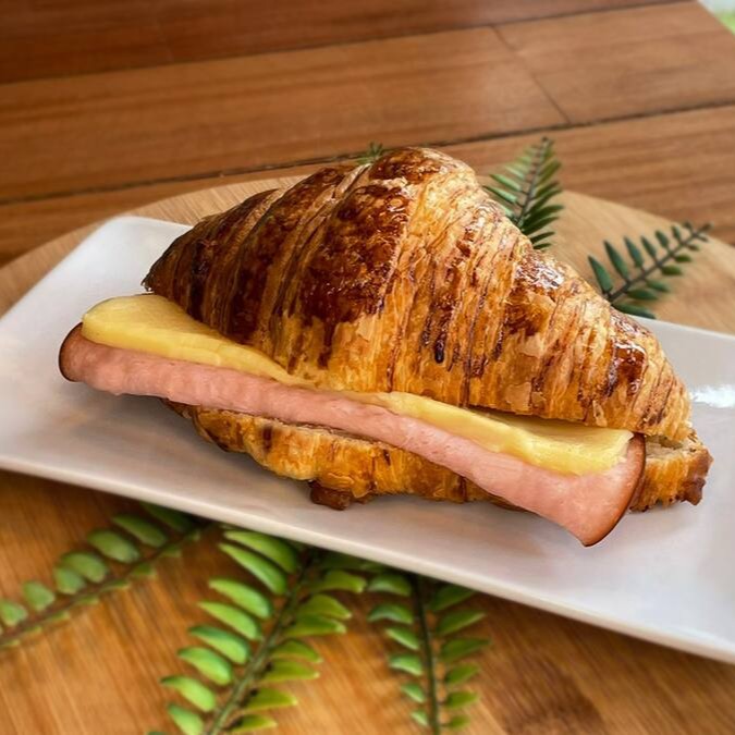Croissant com recheio de peito de frango desfiado, milho, queijo coalho e cream cheese.