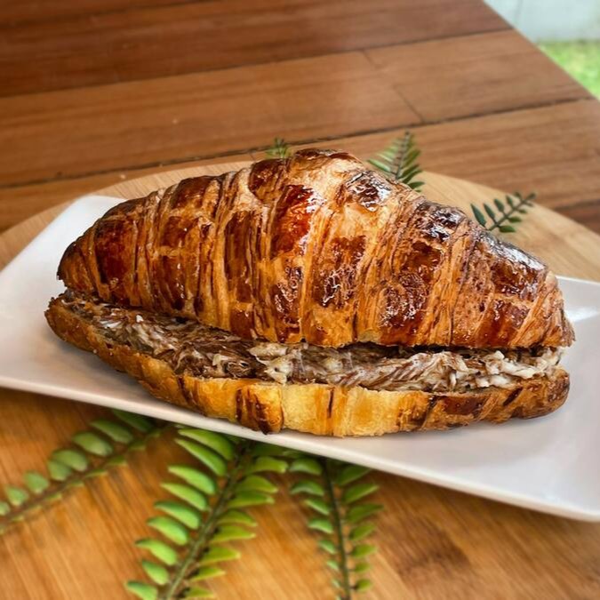 Croissant com recheio de carne de sol desfiada e cream cheese.