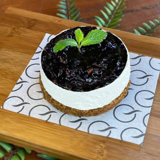 Cheesecake de Frutas Vermelhas ou Morango. Cheesecake com base de biscoito crocante, recheio de cream cheese e geleia de frutas vermelhas ou morango.