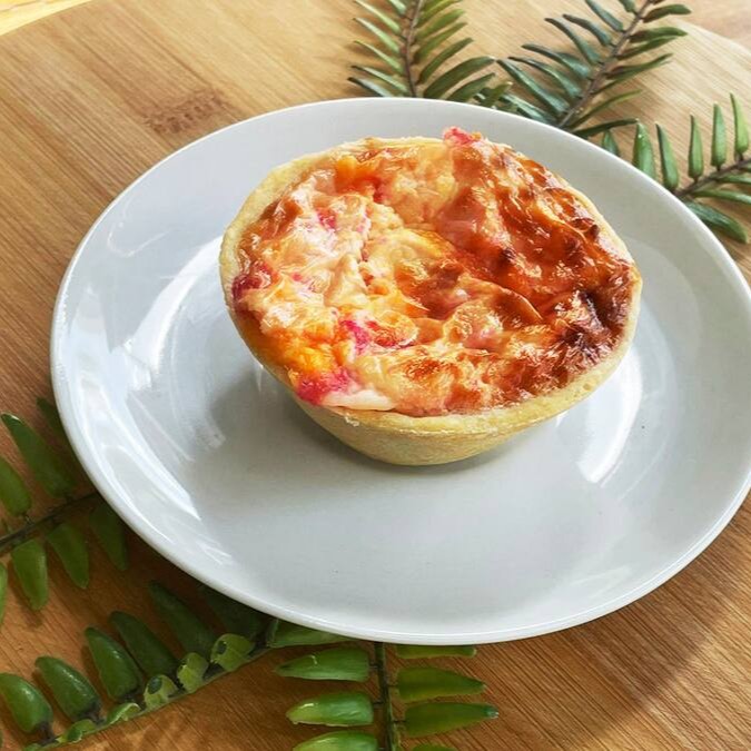Empada com recheio de filé de peito de frango desfiado e cream cheese.