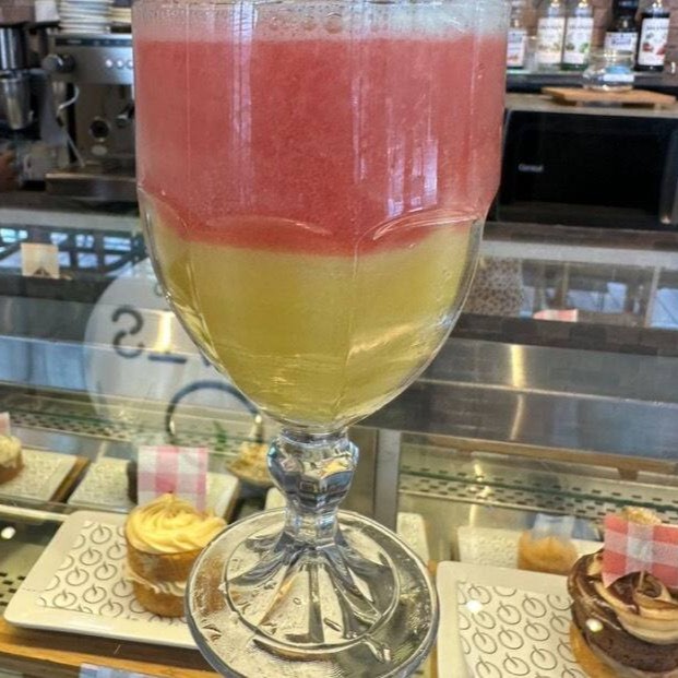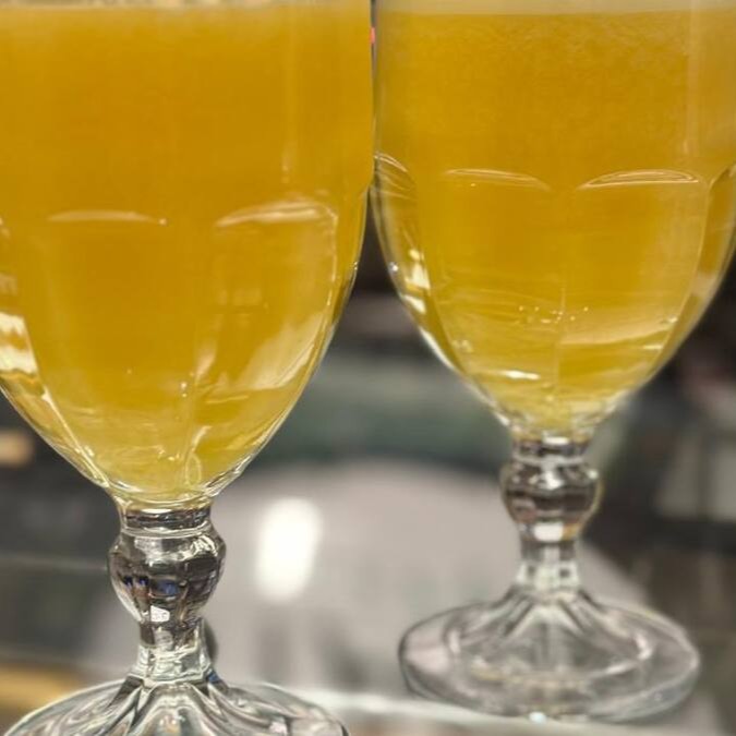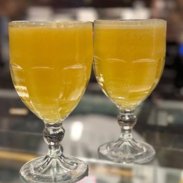 Suco de cajá, cajú, maracujá e abacaxi com ou sem hortelã.