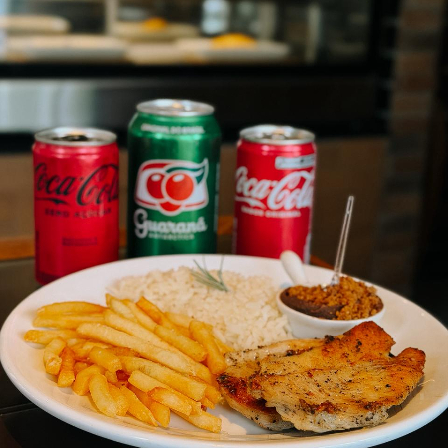 Filé de peito de frango com arroz e batata palito + Guaraná Antarctica (Lata ) + Brigadeiro no pote.