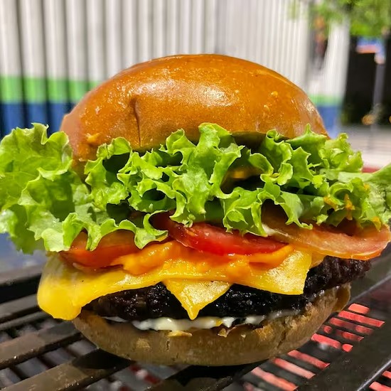 Pão brioche macio, blend de fraldinha na brasa. Queijo mussarela ou queijo cheddar. Molho cheddar ou creme cheese. Bacon crocante ou cebola caramelizada