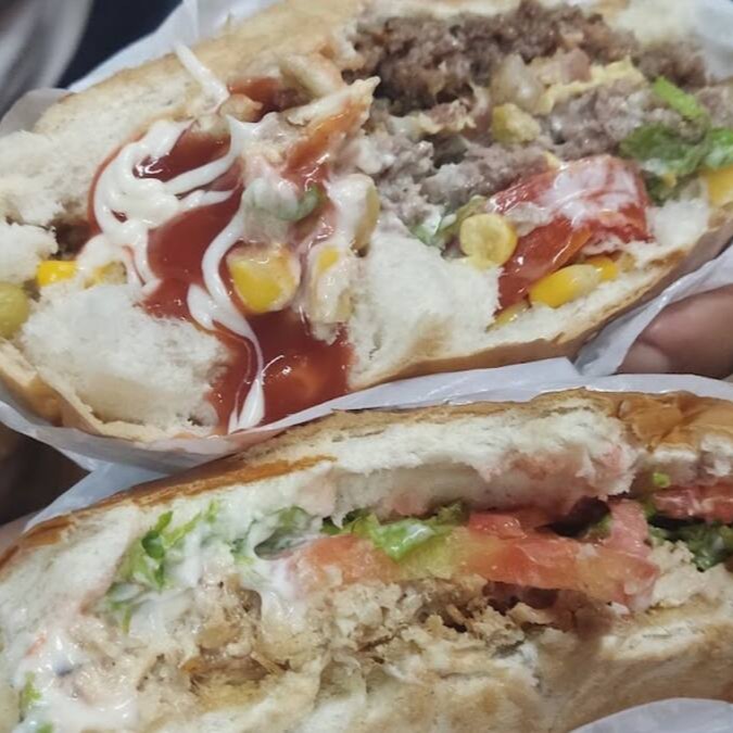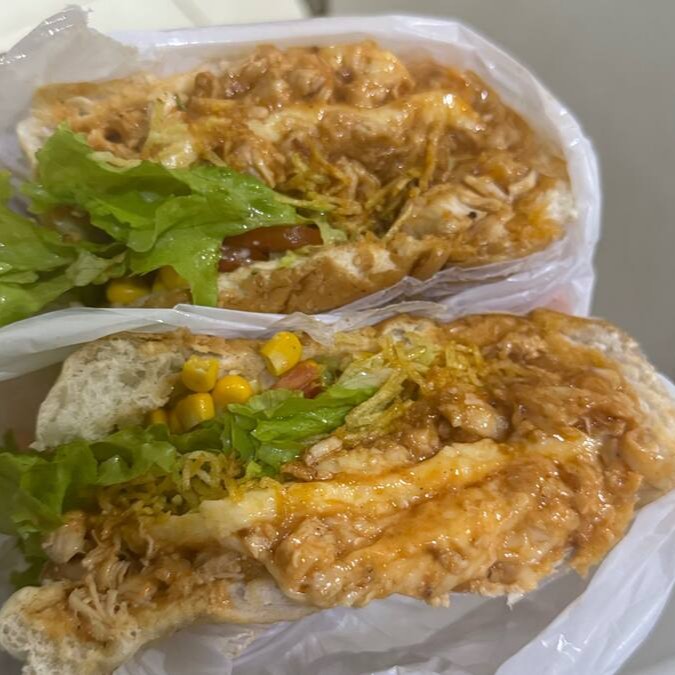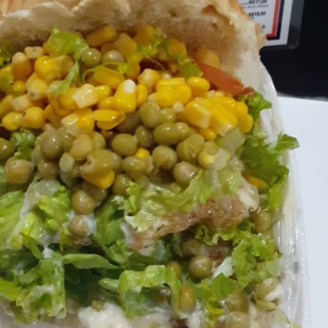 Pão bola filé de frango queijo coalho tomate alface milho maionese temperada
