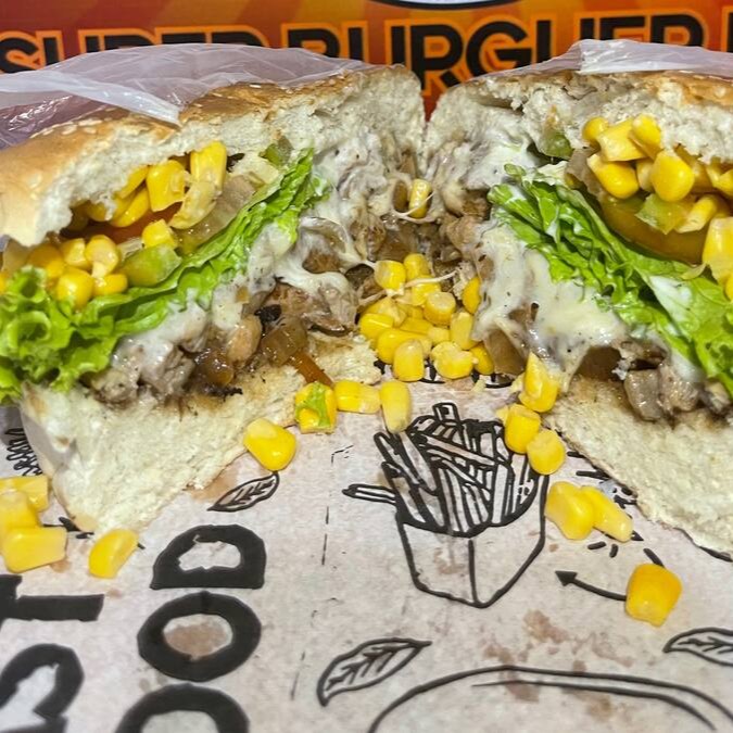 Pão bola filé de frango queijo chedda queijo Catupiry queijo mussarela tomate alface milho maionese temperada
