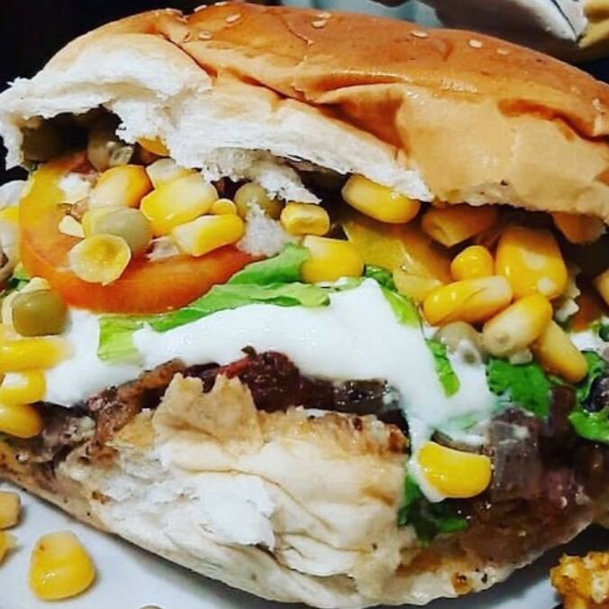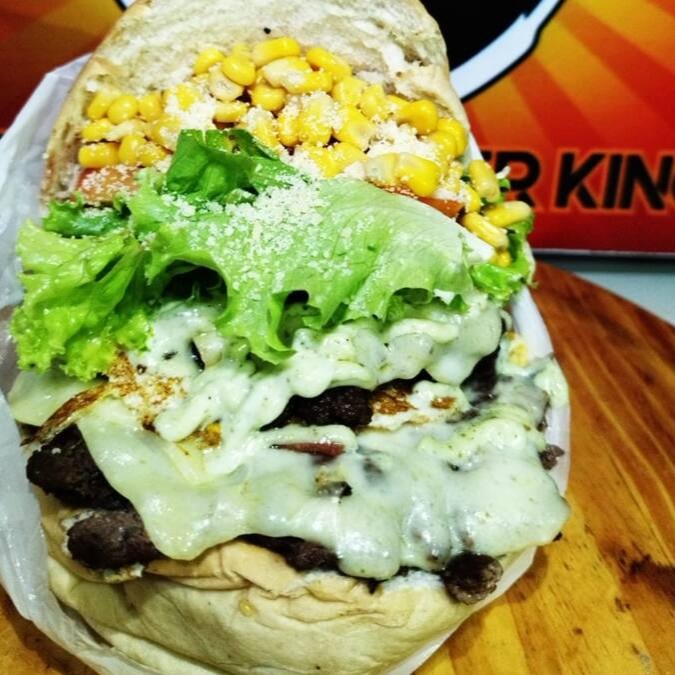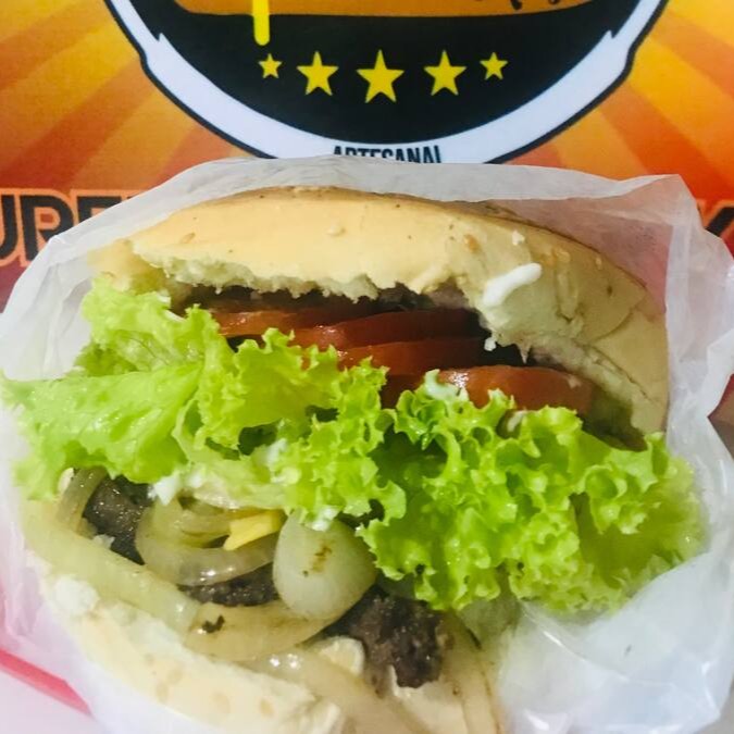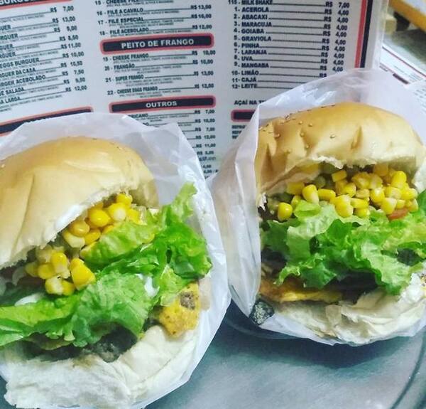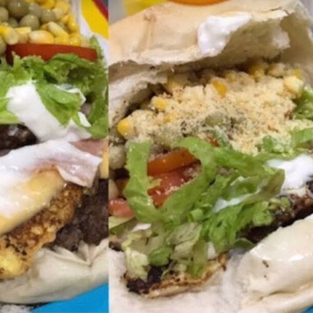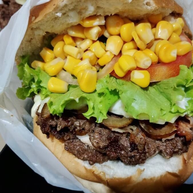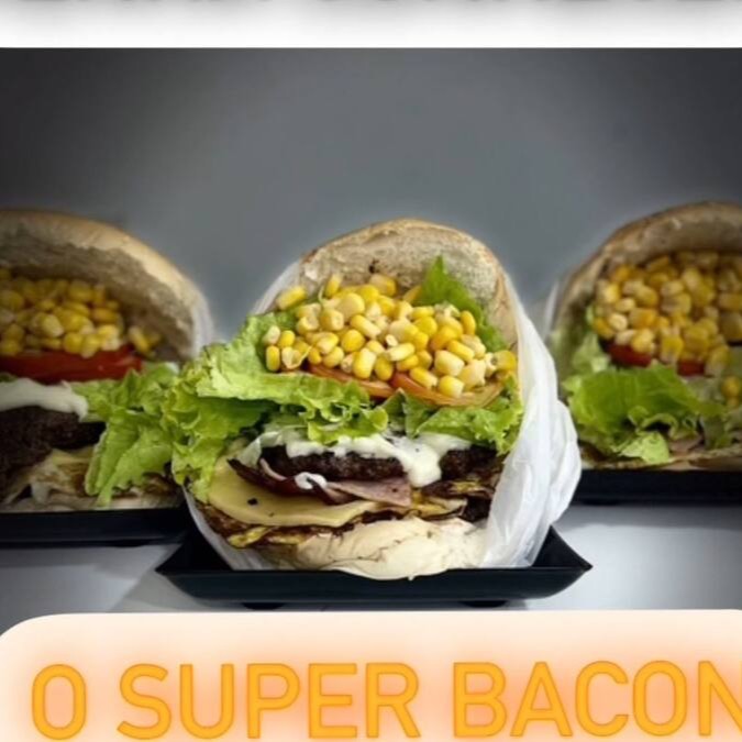 Pão bola 2 hambúrguer artesanal 2xbacon 2xqueijo tomate alface milho maionese temperada