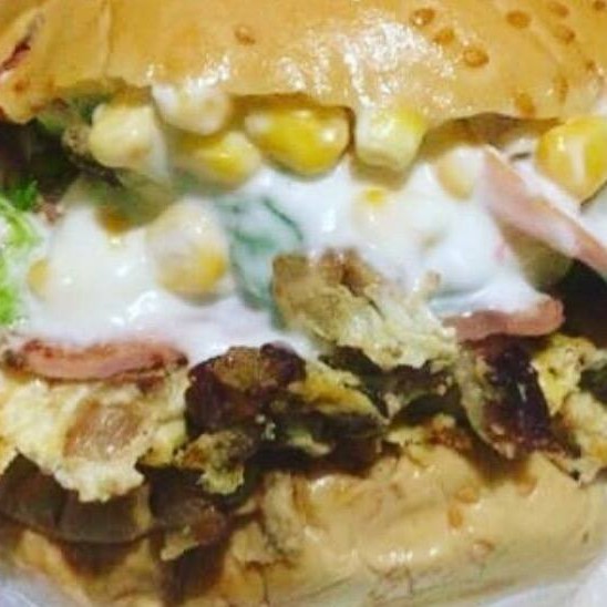 Pão bola filé d e frango ovo hambúrguer artesanal presunto queijo tomate alface milho