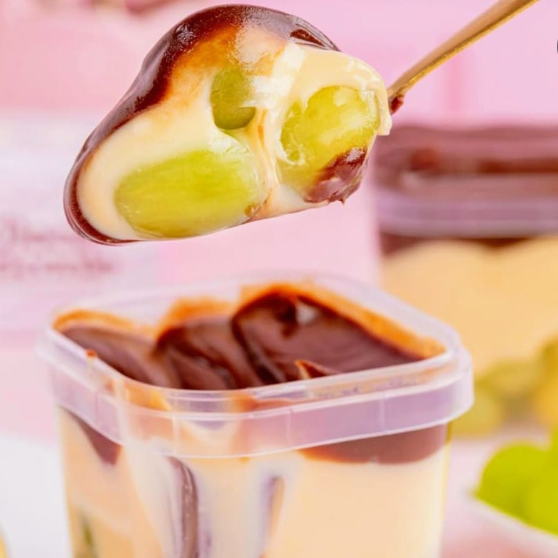 Sobremesa a base de creme de 4 leites gourmet + uvas frescas sem sementes + um briganache finalizando trazendo um sabor equilibrado e refrescante!