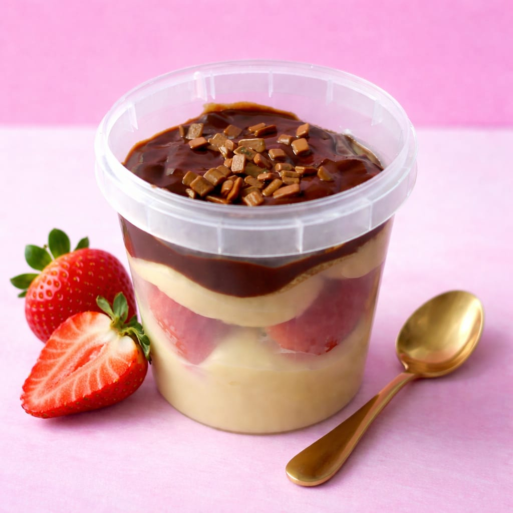 Creme 4 leites de ninho , com morangos frescos selecionados e uma ganache super cremosa de chocolate!