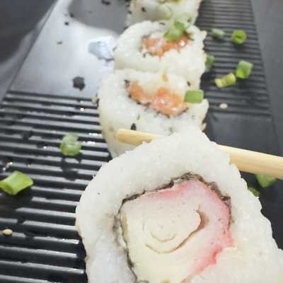 Deliciosos uramakis recheados com kani-kama, pepino e cream cheese, envoltos em arroz e alga nori. Uma explosão de sabor!
