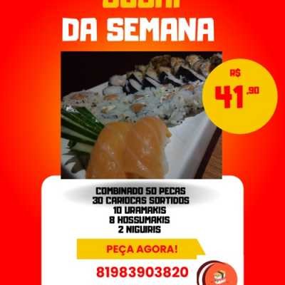 50 Peças: 30 Carioc Sortidos + 10 Uramakis + 8 Hossumakis + 2 Niguiris Salmão