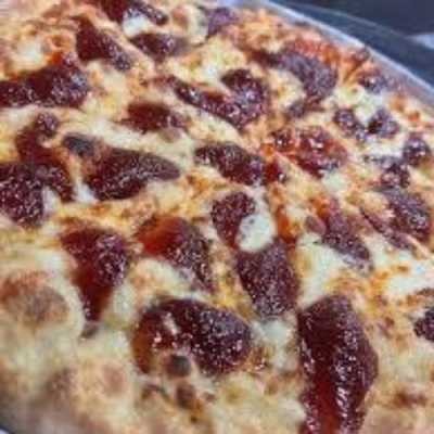 Saborosa pizza com frango desfiado e catupiry, finalizada com orégano.