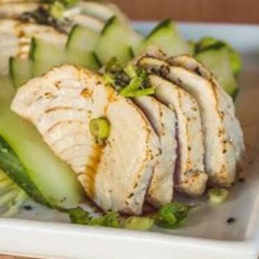 Atum em cubo, pepino desidratado e gergelim