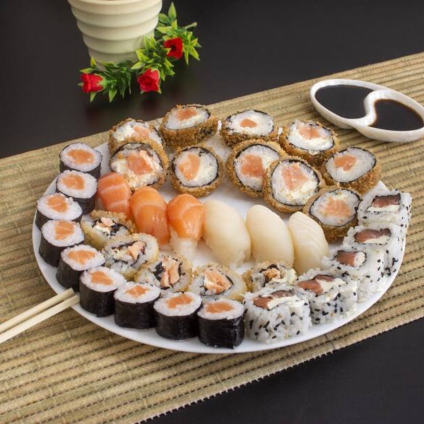 10 sashimi, 10 joy joy, 10 niguiri, 10 ura filadelfia, 10 rossomaki, 10 cariocas 10 hot rolls 10 canapes