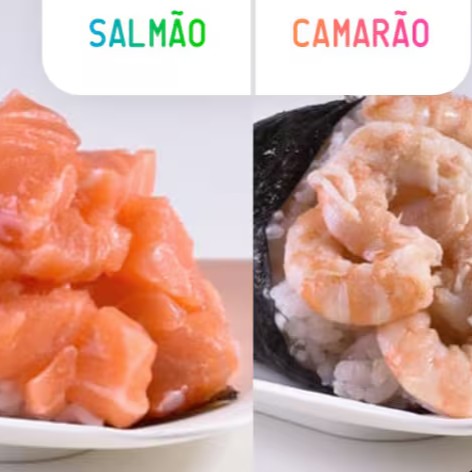 01 de salmão com cream cheese e cebolinha 01 de camarão.