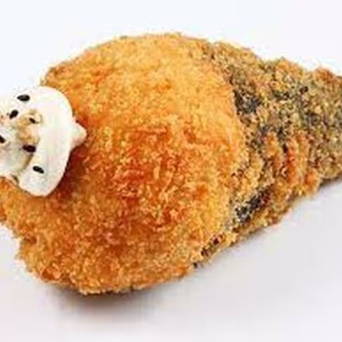 Salmão crocante empanado e frito com cream cheeses e cebolinha.
