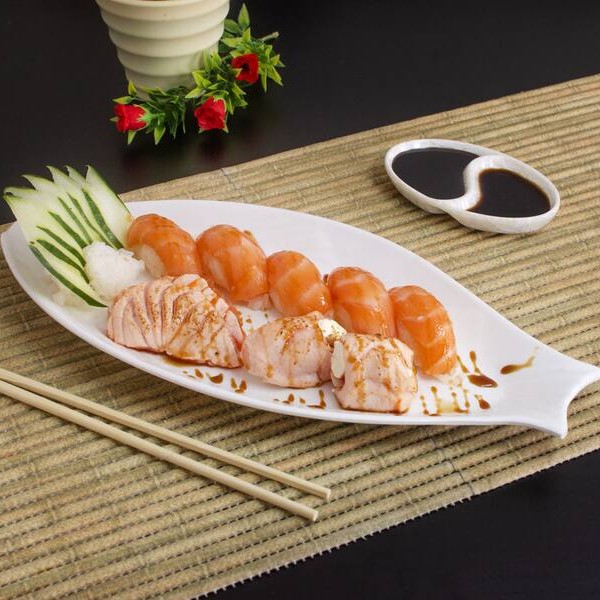 Niguiri de salmão, natural ou massaricado