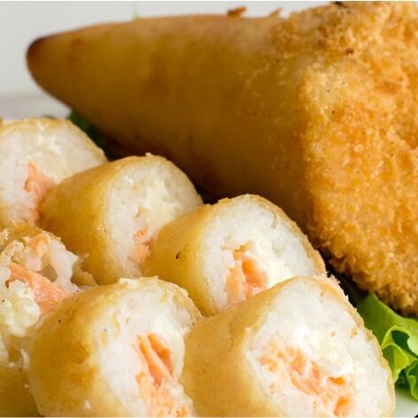 Salmão frito na massa de harumaki