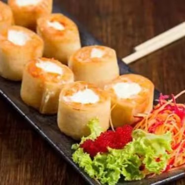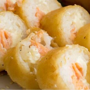 Salmão com cream cheese na massa de harumaki frito