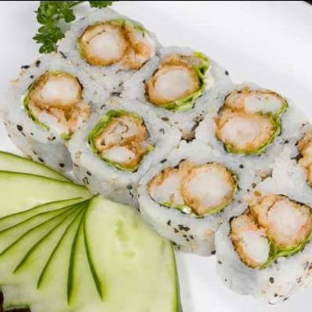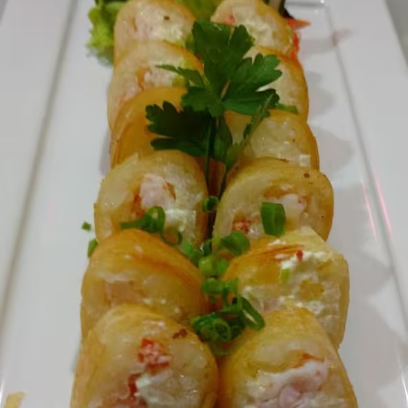 (arroz, cream cheeser, camarão envolto na massa harumaki)