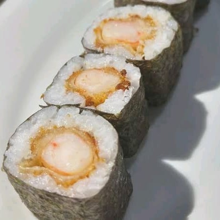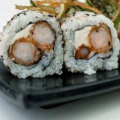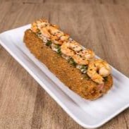 roll de arroz recheado com camarao empanado e crean cheese