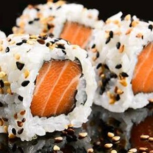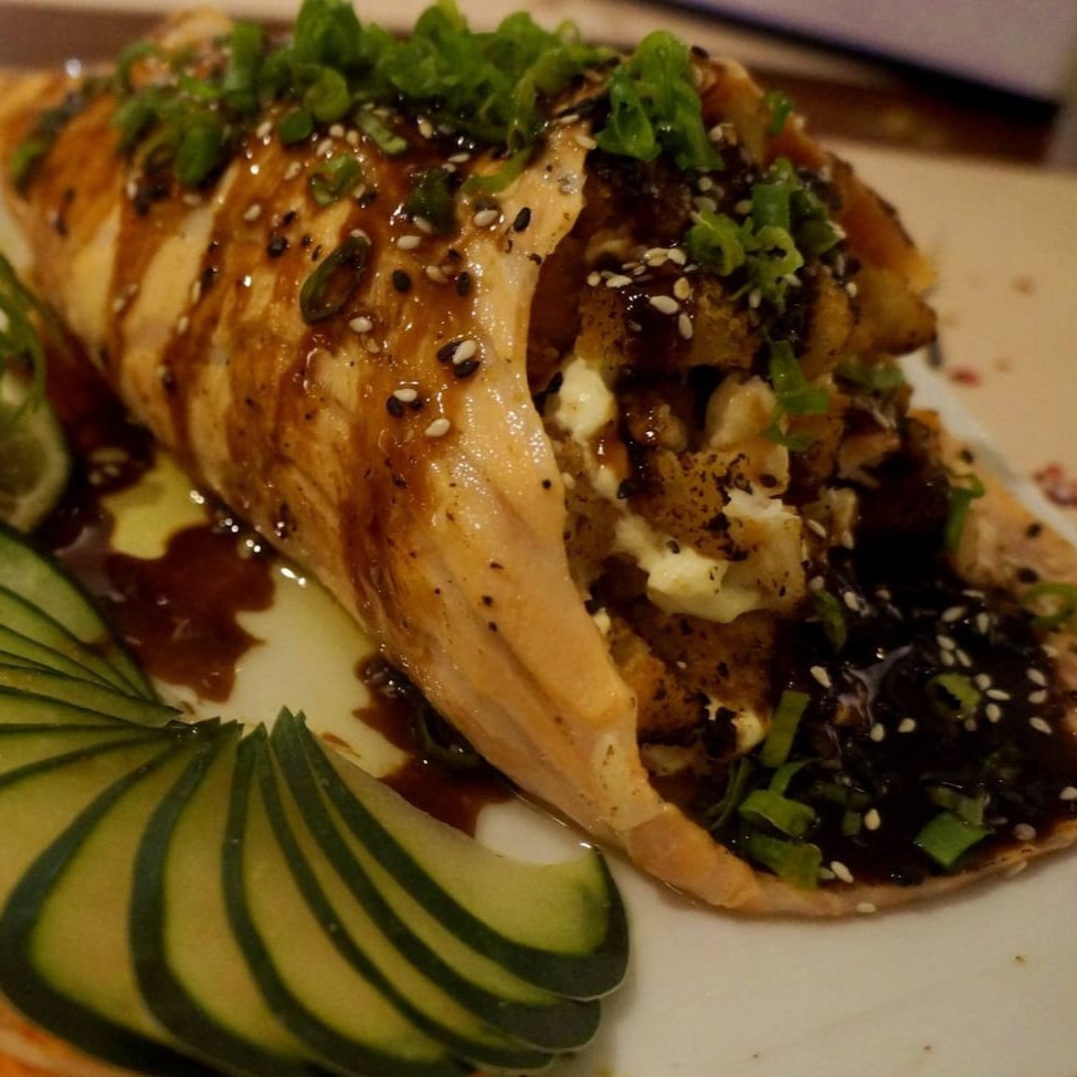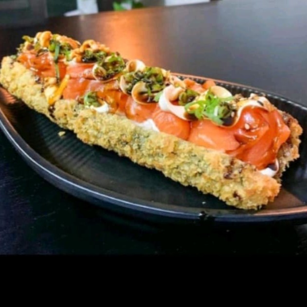 manta de salmao maçaricada ou nao com recheio de salmao natural,crean cheese e arroz cebolinho e gergelin