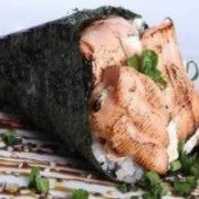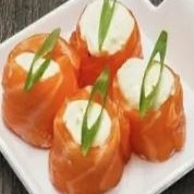 Rolinho de Salmão com creme cheese maçaricado
