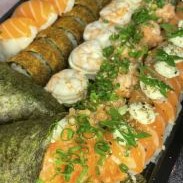 10 carioca de Salmão 10 Hot roll 10 uramaki de kani especial 5 niguiri de Salmão 5 hossomaki joy 5 hossomaki eby 5 sashimi