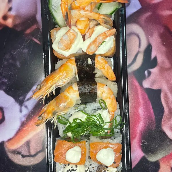 2 Niguiride Salmão, 2 Niguiri De Kani, 10 Uramaki De Kani Especial, 7 Hossomaki Eby E 4 Hossomaki Jyo