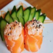 2 Temaki de pasta de salmão com cremea chesses na massa crocante frito