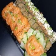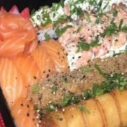 8 sashimis, 4 niguiri de salmão, 4 uramaki de salmão, 4 jojoo