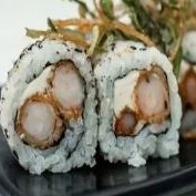 Camarão com creme cheeses envolto por alga, arroz e Gergelim